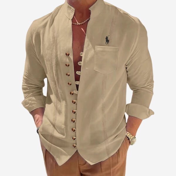 The Ralph Lauren – Casual Button-Up Shirt brings contemporary style to classic menswear. Its sleek Mandarin collar and tailored cut offer a refined yet relaxed look. Perfect for both casual outings and elevated occasions.
