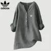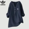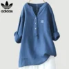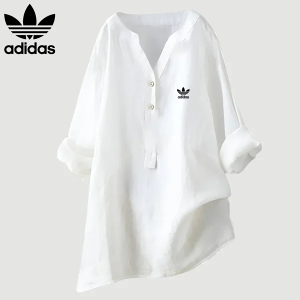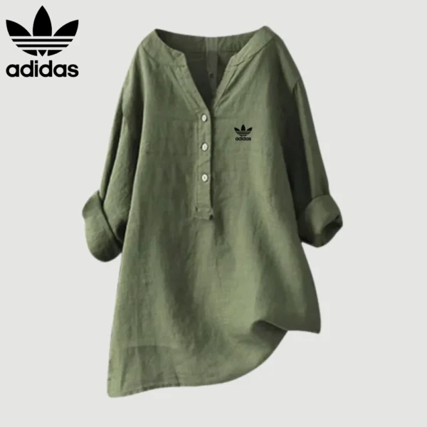 The Adidas – Elegant Linen Shirt is made from breathable linen that feels soft and keeps you cool on hot days. The loose fit allows for freedom of movement without being constricting. Whether you’re going to the beach, taking a walk or having dinner, this top suits all body shapes and occasions.