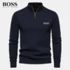 Discover this men’s zip-neck sweater, designed for those who appreciate elegance and comfort. With its slim fit and ribbed fabric, this sweater offers a modern look while ensuring optimum comfort. Its sturdy zipper and meticulous details testify to its exceptional finish.