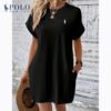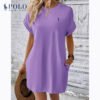 With its solid color, short sleeves, and scoop neckline, this dress is the definition of relaxed elegance. The soft fabric and relaxed fit ensure you’ll be comfortable and look effortlessly chic. An easy choice for casual comfort and timeless appeal.
