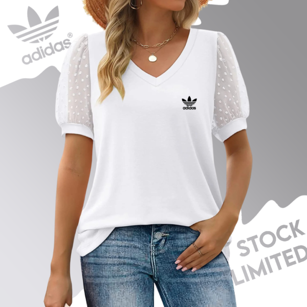 The Adidas – New Elegant T-Shirt offers a flattering neckline and semi-sheer sleeves for a soft, feminine look. Versatile and polished, it’s perfect for work or leisure, transitioning seamlessly from day to night.