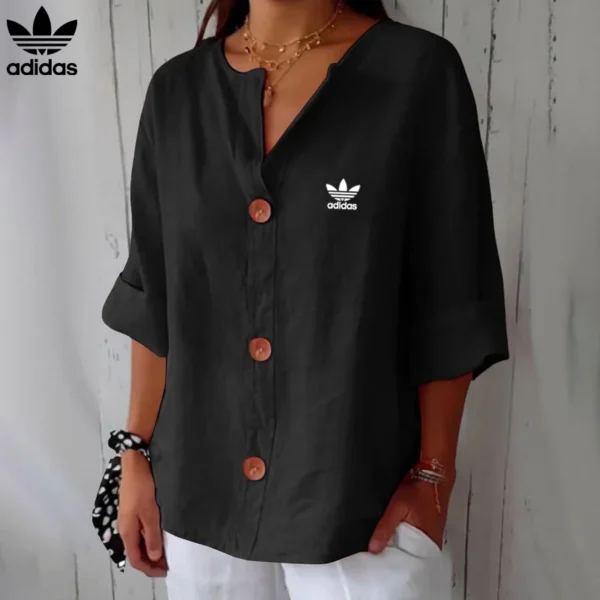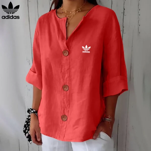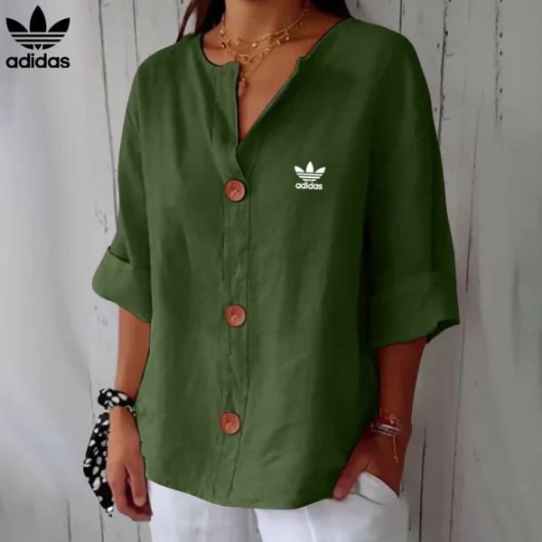 Redefine your everyday look with this effortlessly Adidas – New Linen Blouse, made for women who crave both comfort and sophistication. With its relaxed cut, soft flow, and charming wood-effect buttons, this piece offers a timeless, minimalist style that blends seamlessly into any wardrobe.
