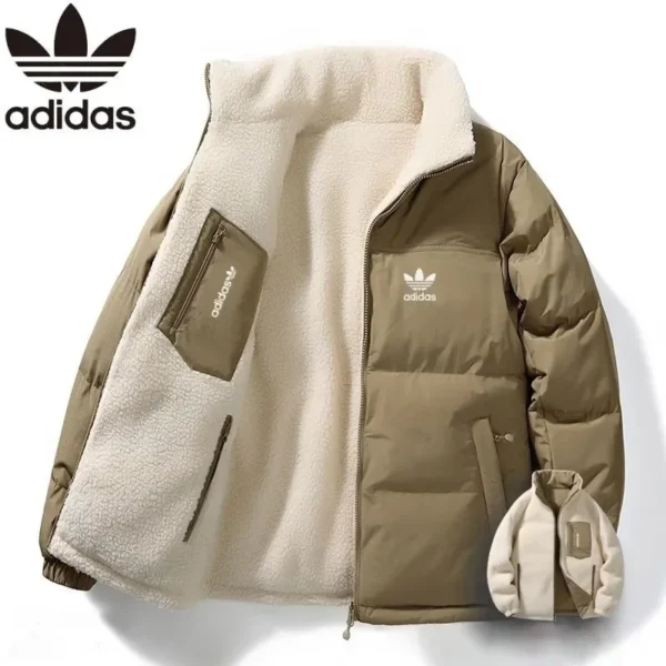 The Adidas – New Reversible Puffer gives you double the style without extra bulk. One side features a clean, insulated puffer shell with iconic Adidas branding. Flip it inside out and you’ve got a soft, sherpa-fleece jacket that feels as good as it looks. One jacket, two moods—wear it how you want.