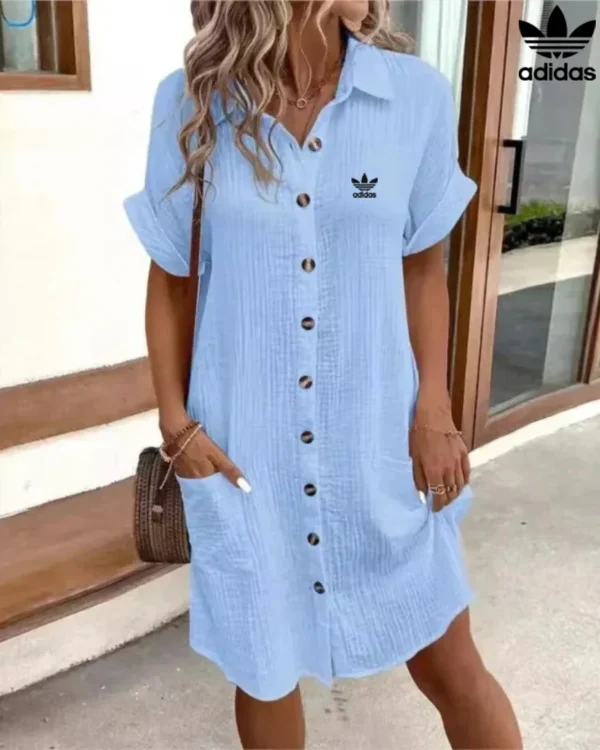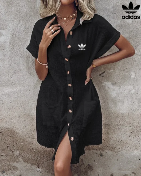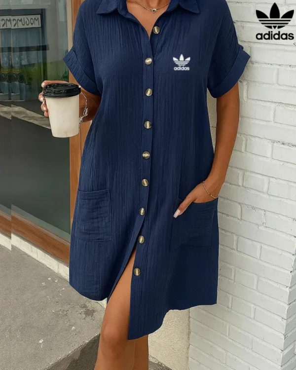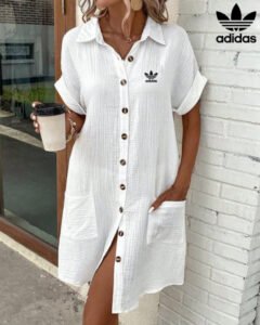 Elevate your everyday wardrobe with the Adidas – New Shirt Dress, a perfect harmony of style and comfort. Crafted from a lightweight, subtly textured fabric, it drapes fluidly and feels luxuriously soft, making it your go-to choice for sun-soaked days.