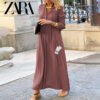 This Zara – New Trendy Dress is a timeless addition to any wardrobe. Whether you’re heading to a formal gathering or enjoying a stylish evening stroll, this dress adapts to the occasion with ease. Its rich tone flatters every skin tone and offers endless styling possibilities—from gold jewelry to layered scarves.